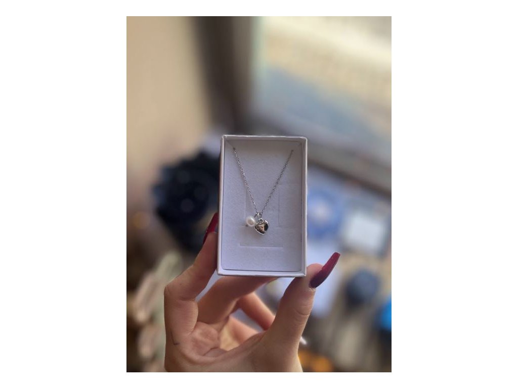 38 - řetízek se stříbrným srdíčkem a perlou