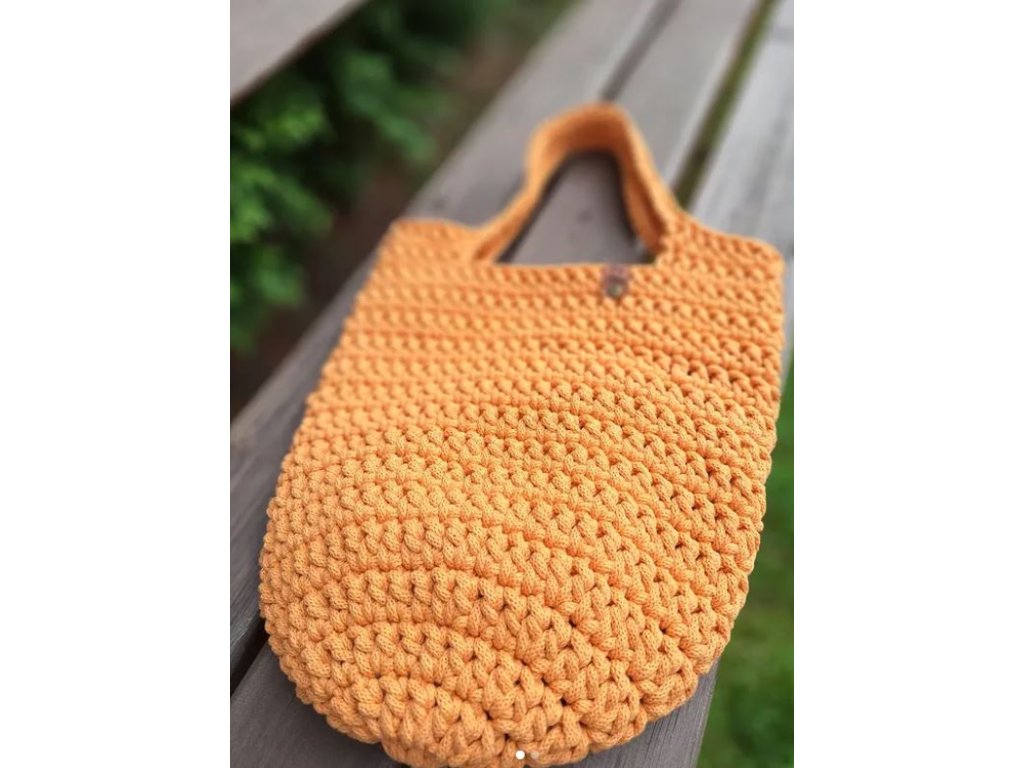 Háčkovaná kabelka s kulatým dnem v pomerančově oranžové.