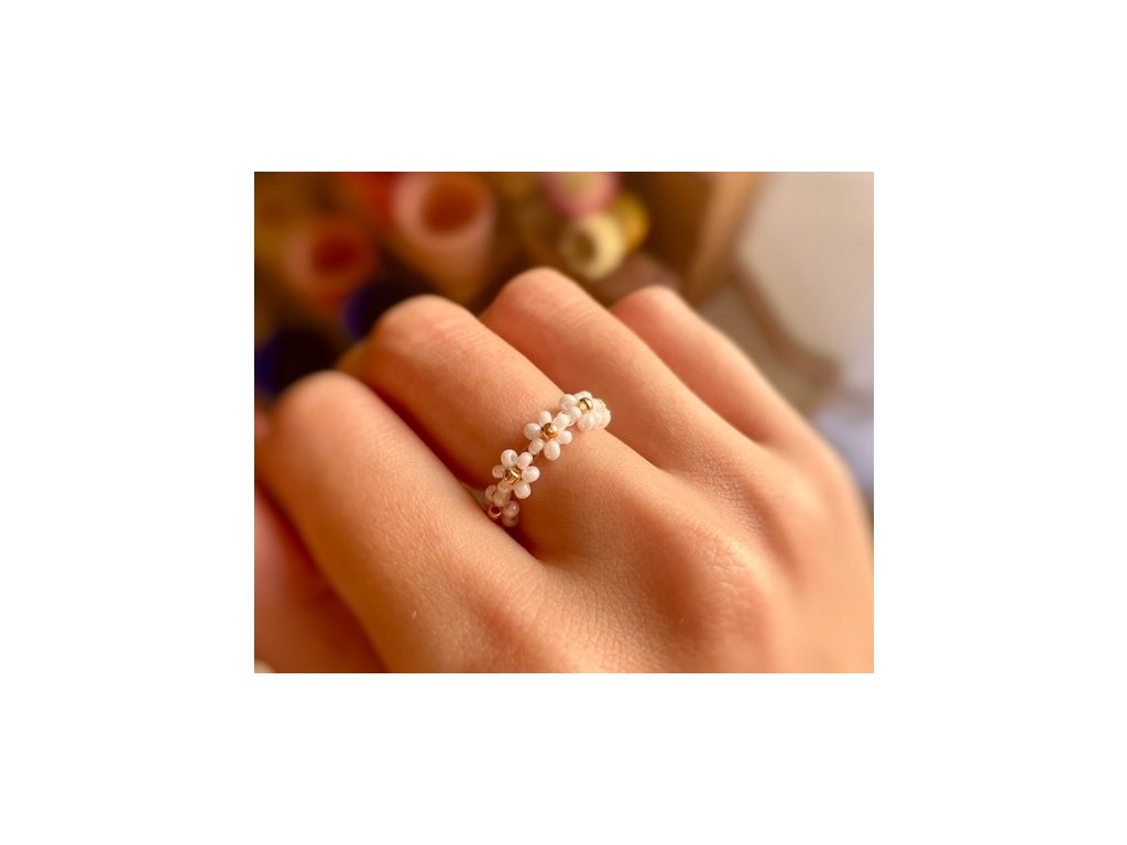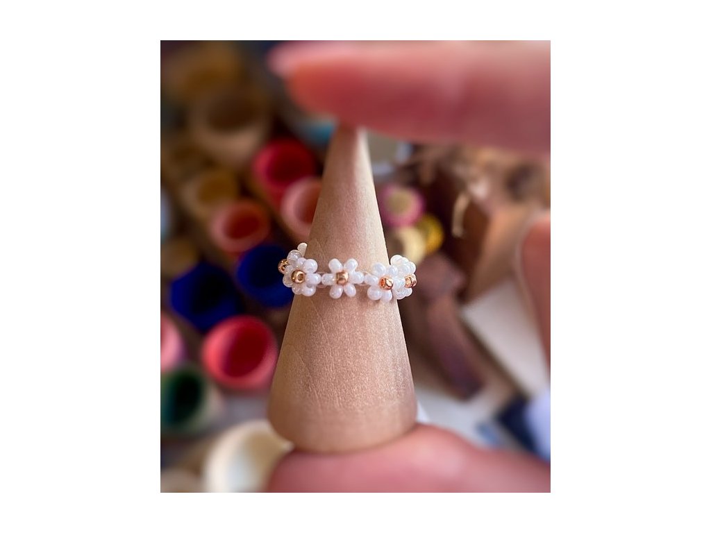 Dodejte svému vzhledu nádech jarního kouzla s naším jemným květinovým prstenem! Tento elegantní prsten je zdobený bílými květinkami. Ideální pro každodenní nošení nebo jako drobný dárek pro milovanou osobu.