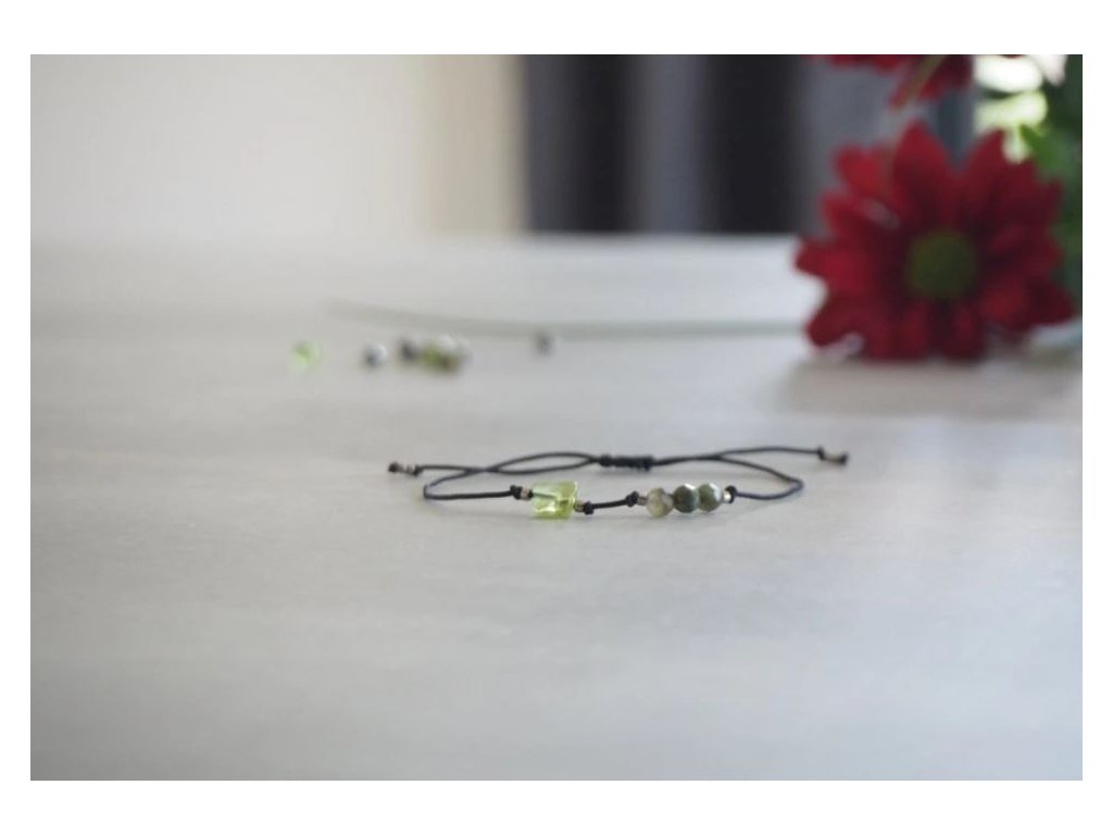 Dámský minerální náramek - turmalín, olivín - nugetka