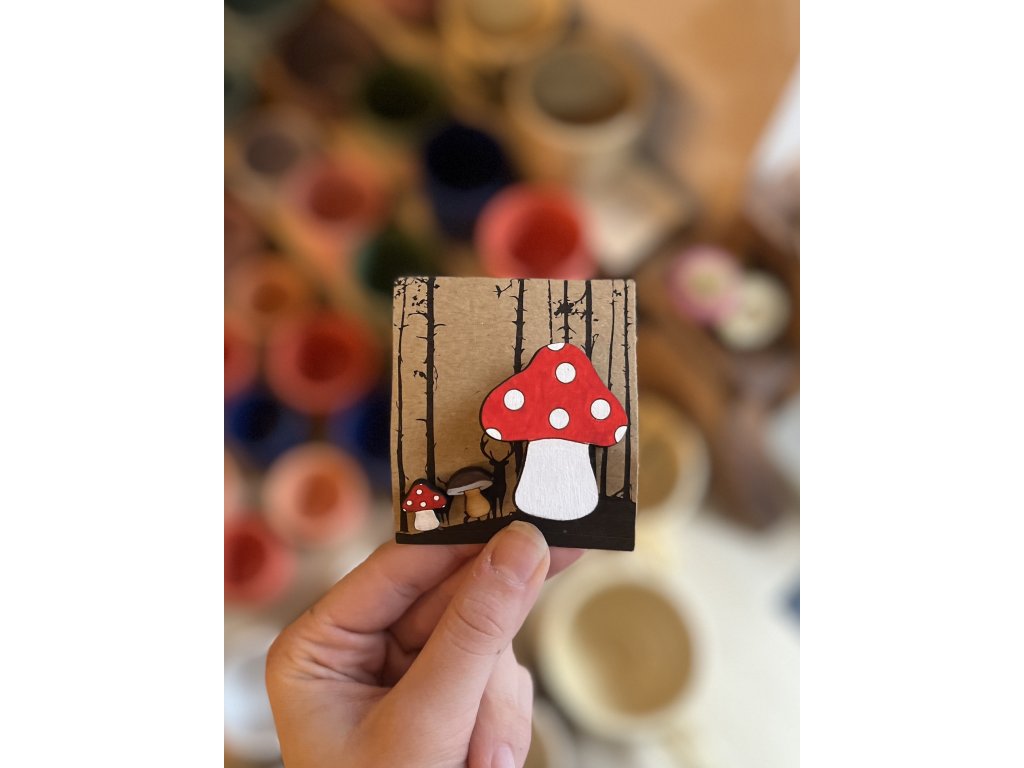 Dřevěná sada brož s náušnicemi - Mochomůrka