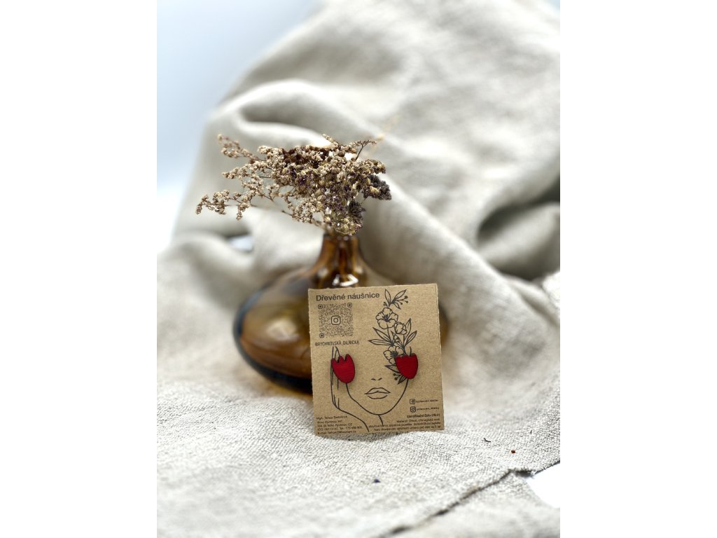 Dřevěné náušnice - Červený tulipán