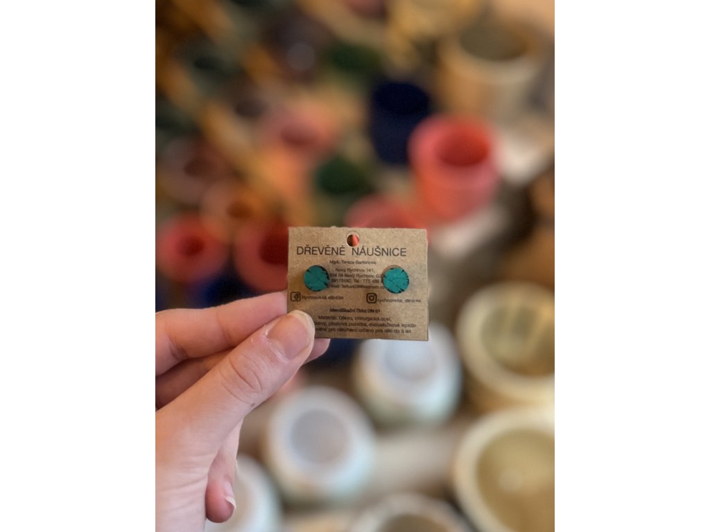 Dřevěné náušnice - Kulaté tmavě zelené, malé