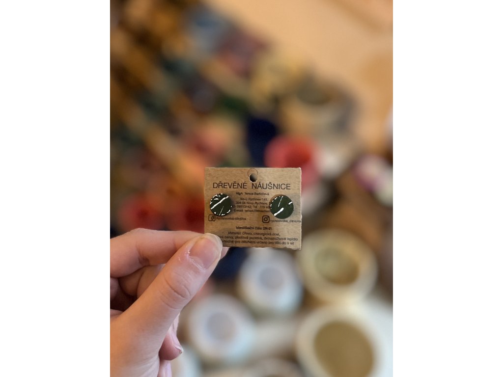 Dřevěné náušnice - Kulaté tmavě zelené, střední