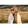 Čepka je ušita z recyklované svetroviny. Je vhodná do chladnějšího počasí.