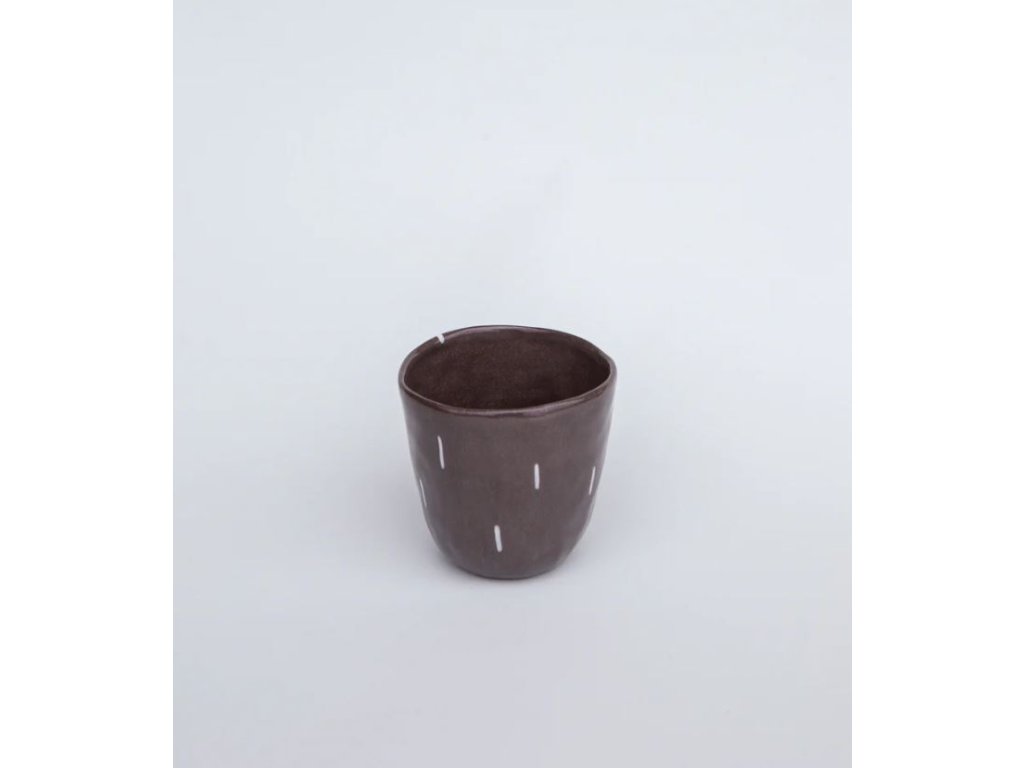 Chcela som vymyslieť nejaký minimalistický design na hrnčeky, no čím viac som nad ním premýšľala, tým viac blbostí mi napadalo. Tak som si povedala, že najlepšie sa vymýšľa za chodu, vzala som do ruky štetec a zrodil sa hrnček s čiaročkovým vzorom. Jeho jednoduchý design je vo finále doplnený lesklou transparentnou glazúrou. Nič viac netreba.