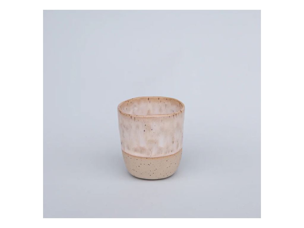 Najskôr som si touto glazúrou nebola istá, pretože som skôr na farebnejšie kúsky, no hneď ako som vytiahla z pece prvú várku, bola som ňou očarená. Jemné odlesky pastelovo ružovej sa so svetlou hlinou pekne skamošili a z tohoto hrnčeku sa stala stálica na mojej predajnej poličke.