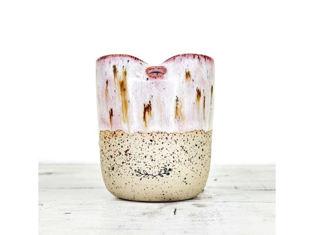 Tento Cold Cup je ručně vytočen na hrnčířském kruhu z kvalitní pigmentované kameniny, tvarován do jedinečného designu a následně vypálen při vysokých teplotách v elektrické peci. Jemné odchylky v objemu, měřeném až po plný okraj, slouží jako orientační hodnota.