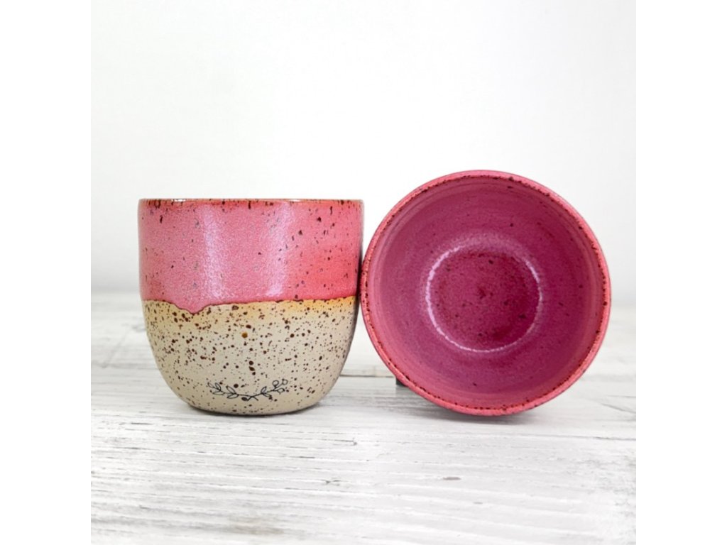Tento hrníček je ručně vytočen na hrnčířském kruhu z kvalitní pigmentované kameniny a následně vypálen při vysokých teplotách v elektrické peci. Tento proces zajišťuje nejen jeho odolnost, ale i bezpečnost pro mytí v myčce nádobí. Každý hrníček je originál s jemnými odchylkami v objemu, který je měřen až po plný okraj a slouží jako orientační hodnota.