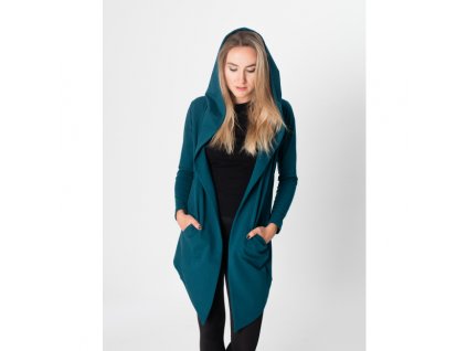 Ležérní styl kardiganu je doplněn stylovou kapucí.