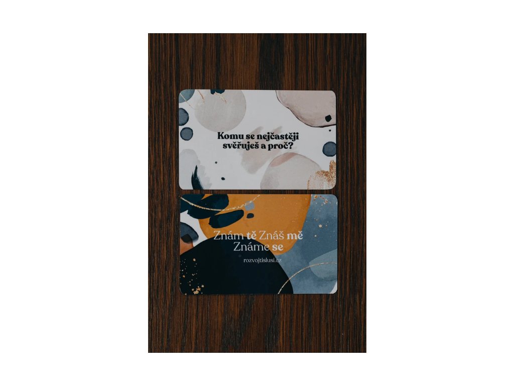 Jsme Lucie a Martin, stojíme za projektem zaměřeným na osobní rozvoj a vzdělávání. Naše karty podporují vzájemnou komunikaci a poznání. Jsou vhodné pro jednotlivce, páry i do firem. Jsou vytisknuty na kvalitním papíře s ideální velikostí do ruky. Součástí balíčku je návod a inspirace, jak karty hrát. Vymysleli jsme je v Brně, spojili jsme se s dalšími místními lidmi a celý produkt vzniká v jednom městě - přes grafiku, odběr balícího materiálu až po tisk.