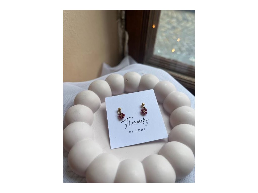 Kytičkové náušnice visací - burgundy