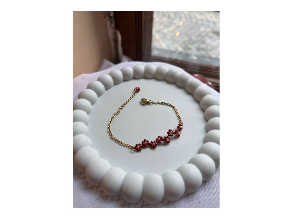 Kytičkový náramek na řetízku - zlato-burgundy