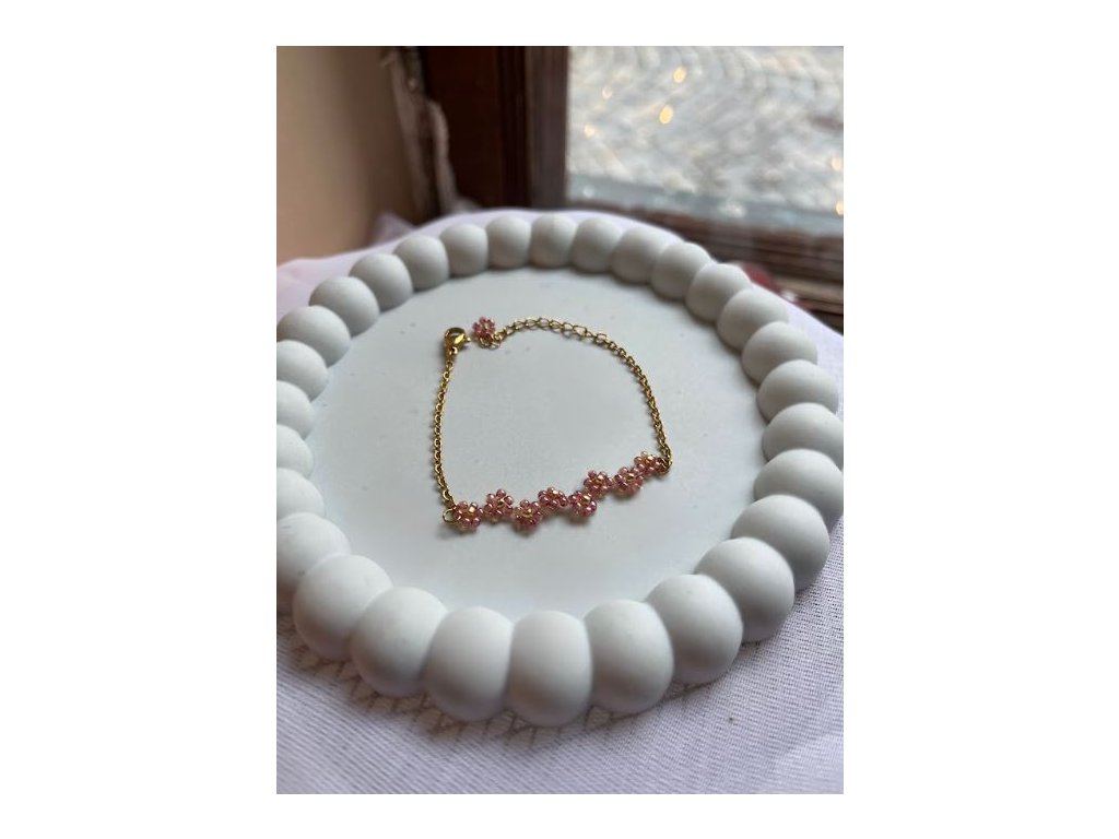 Kytičkový náramek na řetízku - růžovo-zlatý
