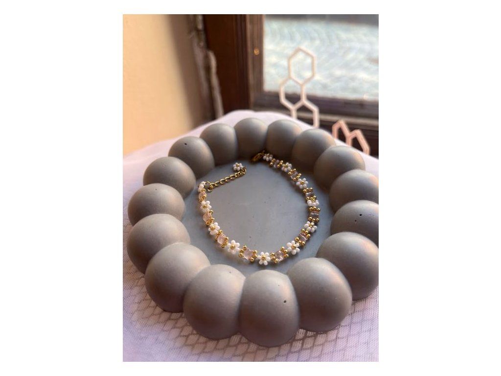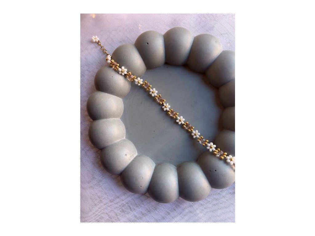 Tento půvabný květinový náramek je tou pravou volbou pro všechny, kdo milují jemnou eleganci. Krásně zpracované bílé květinky s drobným detailem v podobě růžového křišťálu jsou ideální volbou pro každou příležitost. Ať už si ho nasadíte na denní nošení, nebo jako doplněk k večerním šatům, tento náramek zaručeně osloví každého.