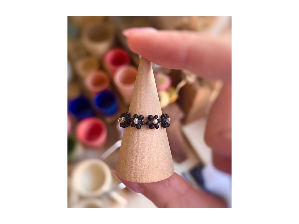 Dodejte svému vzhledu nádech jarního kouzla s naším jemným květinovým prstenem! Tento elegantní prsten je zdobený černými květinkami, a je ideální pro každodenní nošení nebo jako drobný dárek pro milovanou osobu.