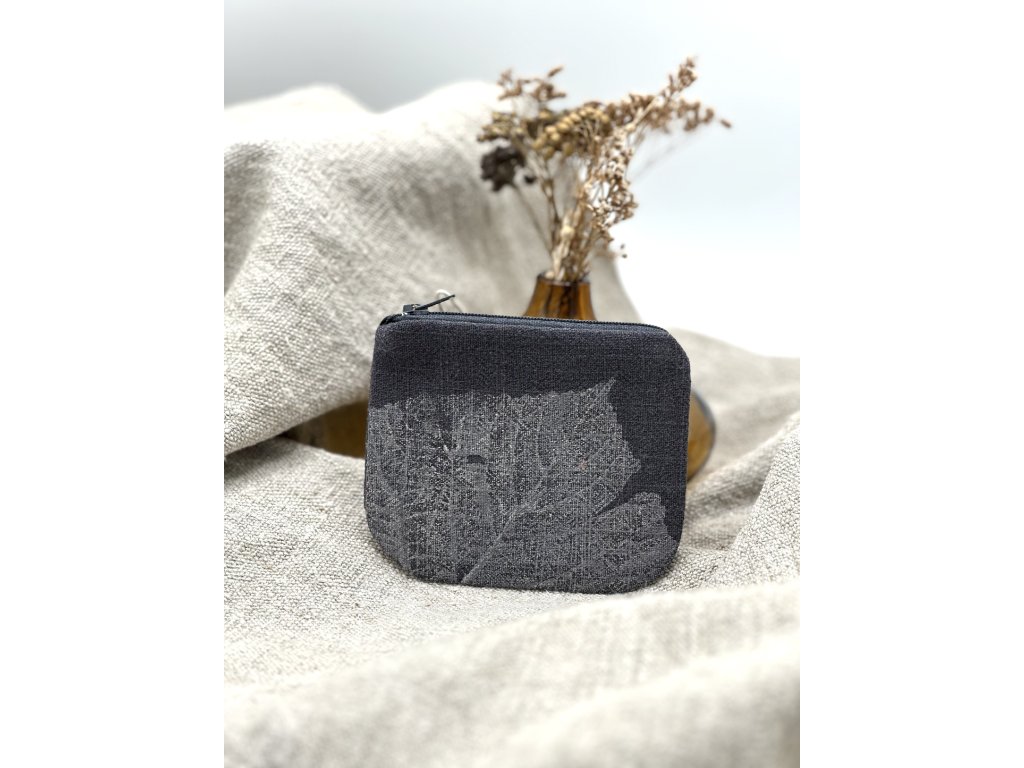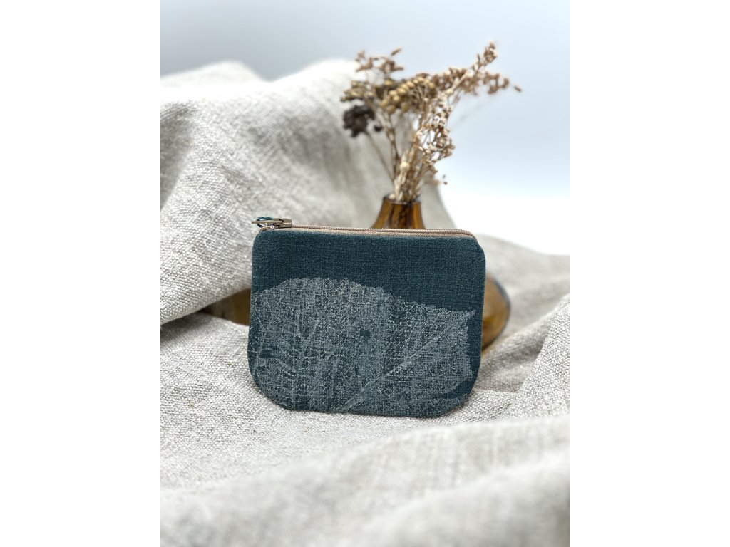 Lněná peněženka s ručním tiskem na kovový zip