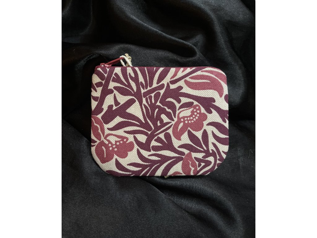 Lněná peněženka s ručním tiskem na kovový zip