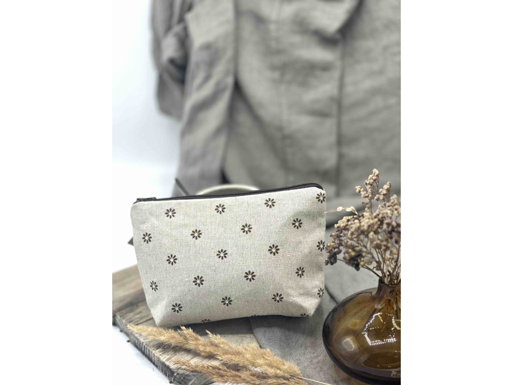 Lněná taštička - Béžová s kytičkami