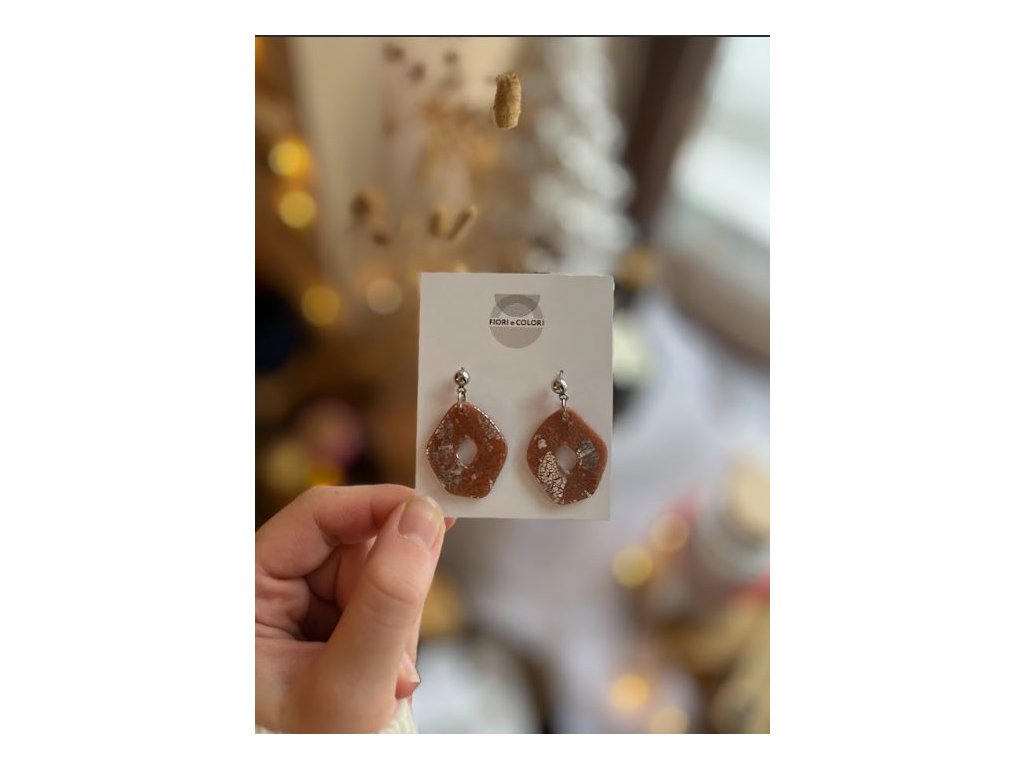 Náušnice jsou z polymerové hmoty a mosazných komponentů. Zapínání je z chirurgické oceli.