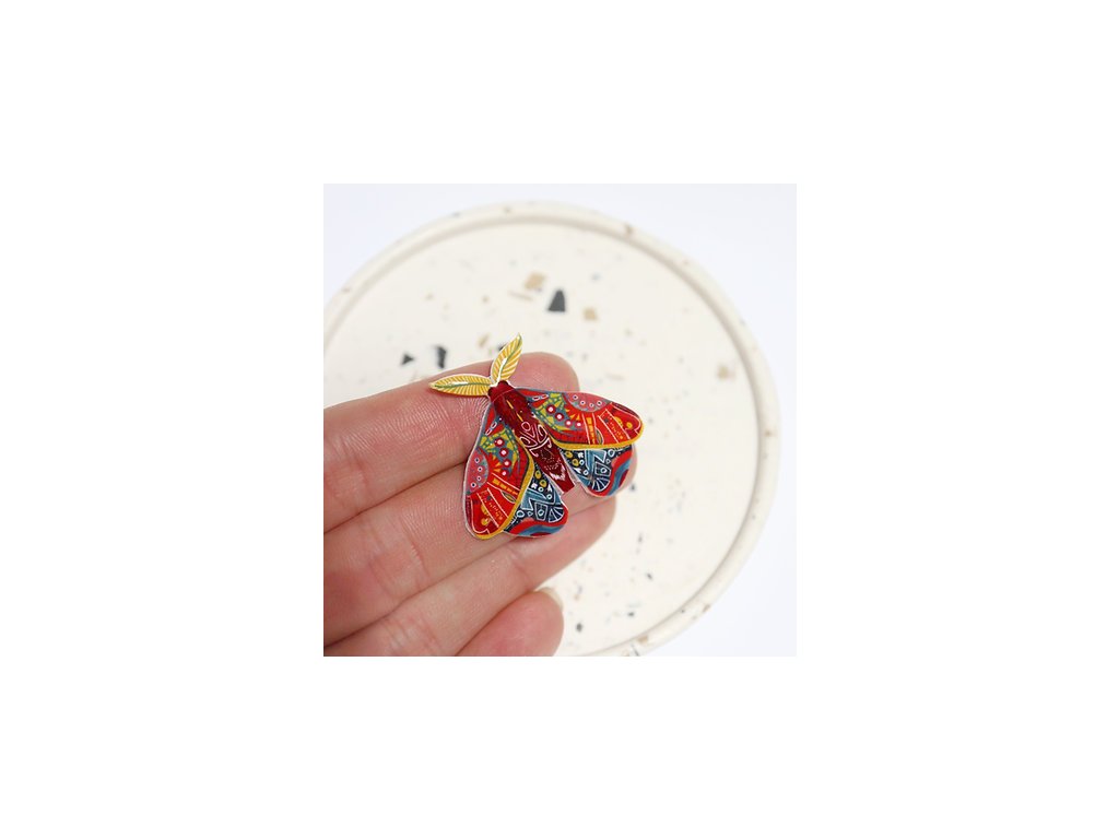 Toto je úplná novinka z naší dílny. Brož s ilustrací můry se vzory inspirovanými africkými látkami krásně oživí každý outfit.
