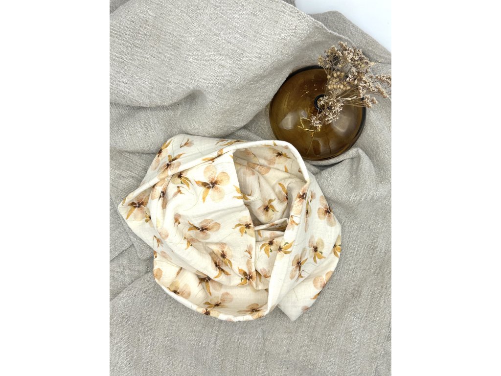 Tento mušelínový nákrčník je skvělým doplňkem pro každodenní nošení. Je vyrobený z jemného a prodyšného mušelínu, který je příjemný na dotek a šetrný k pokožce. Díky své lehkosti zahřeje, ale zároveň nepřehřeje, takže je ideální na chladnější jarní a podzimní dny.