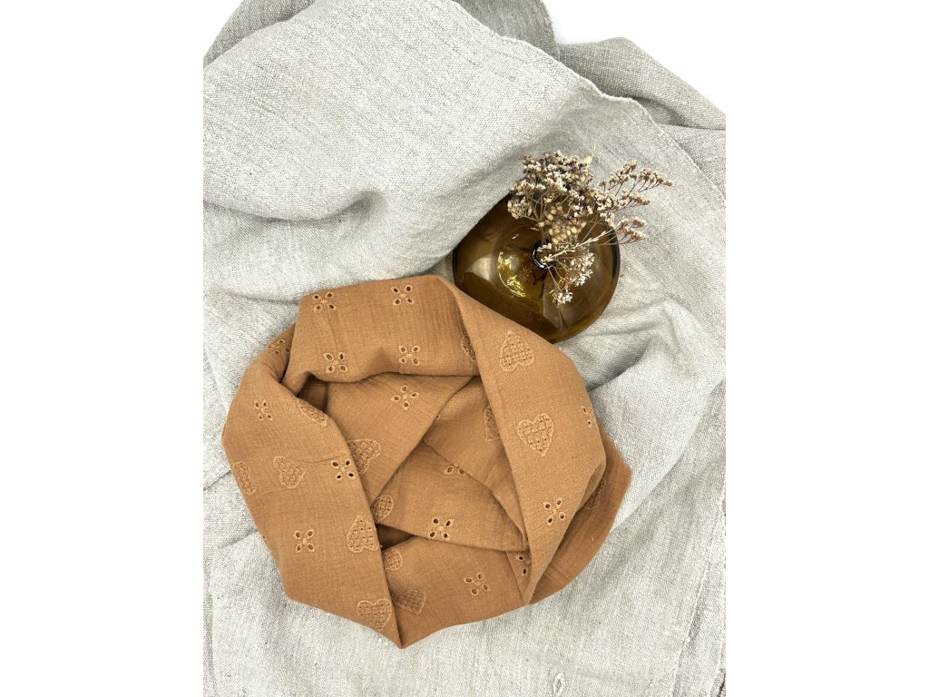 Tento mušelínový nákrčník je skvělým doplňkem pro každodenní nošení. Je vyrobený z jemného a prodyšného mušelínu, který je příjemný na dotek a šetrný k pokožce. Díky své lehkosti zahřeje, ale zároveň nepřehřeje, takže je ideální na chladnější jarní a podzimní dny.