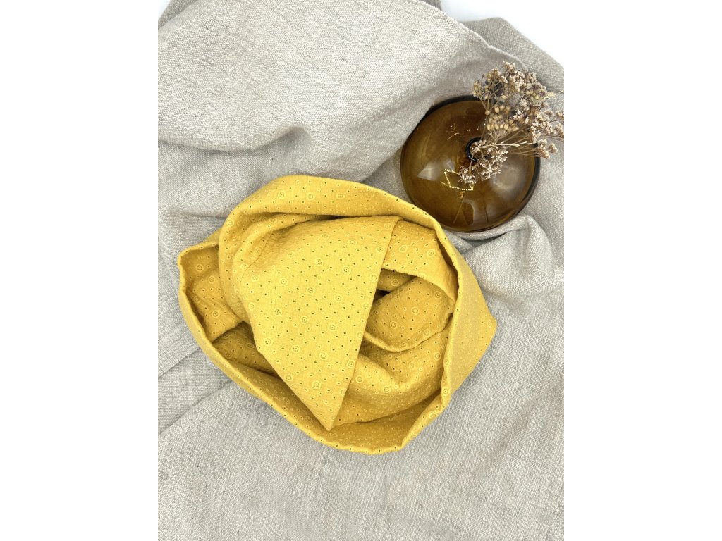 Tento mušelínový nákrčník je skvělým doplňkem pro každodenní nošení. Je vyrobený z jemného a prodyšného mušelínu, který je příjemný na dotek a šetrný k pokožce. Díky své lehkosti zahřeje, ale zároveň nepřehřeje, takže je ideální na chladnější jarní a podzimní dny.