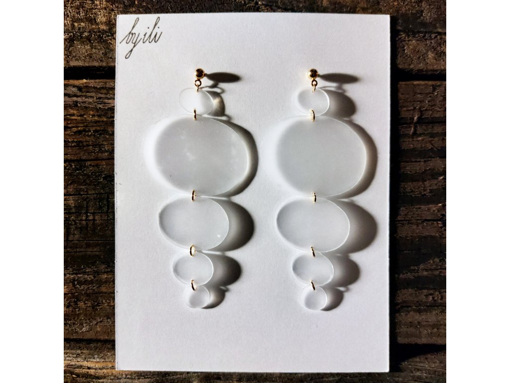 Lehké, jemné, ale přesto výrazné šperky vyráběné unikátní technikou s matným povrchem na smršťovací fólii. Právě díky této technice je každý kus jedinečný originál vyznačující se nečekanou lehkostí. To a mírná průsvitnost dává možnost sáhnout po výrazně větším doplňku, než obvykle.