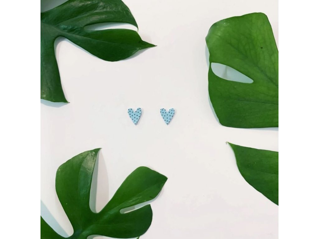Náušnice - Světle modrá srdíčka s tečkami