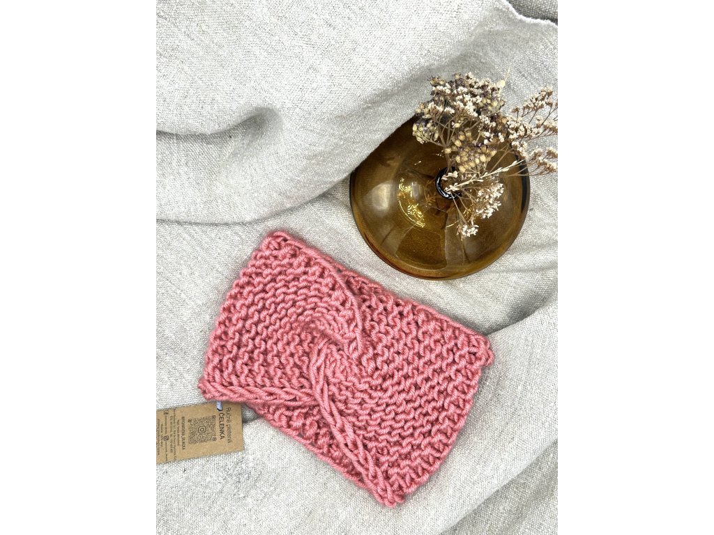 Pletená čelenka - růžová
