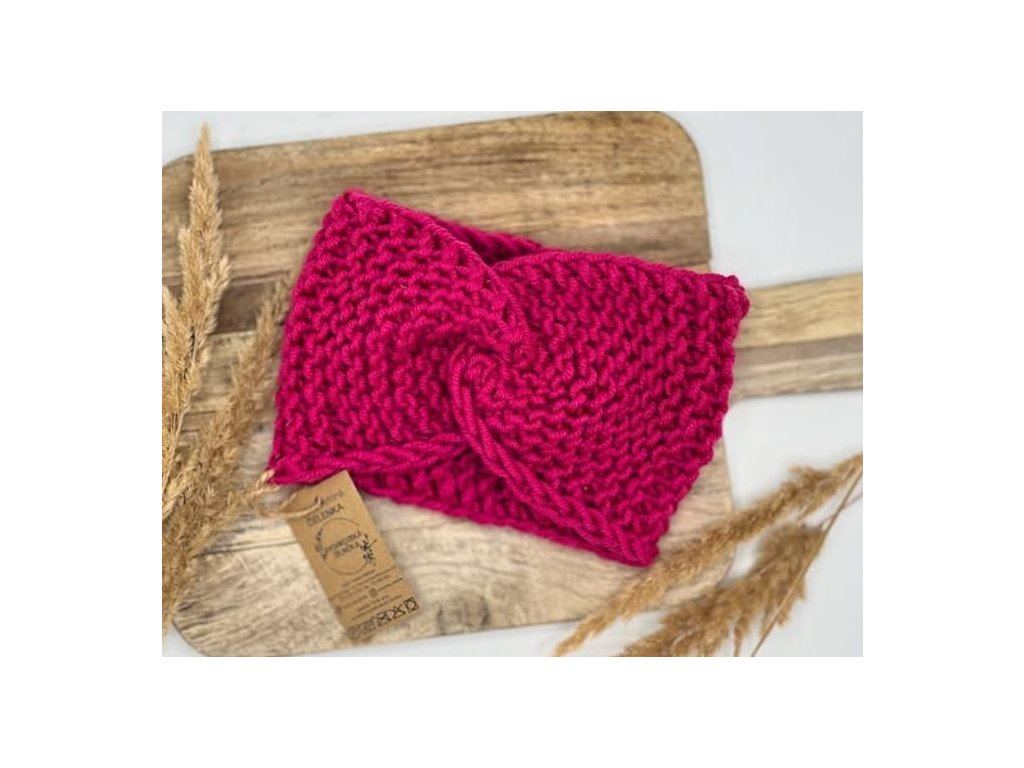 Pletená čelenka - tmavě růžová
