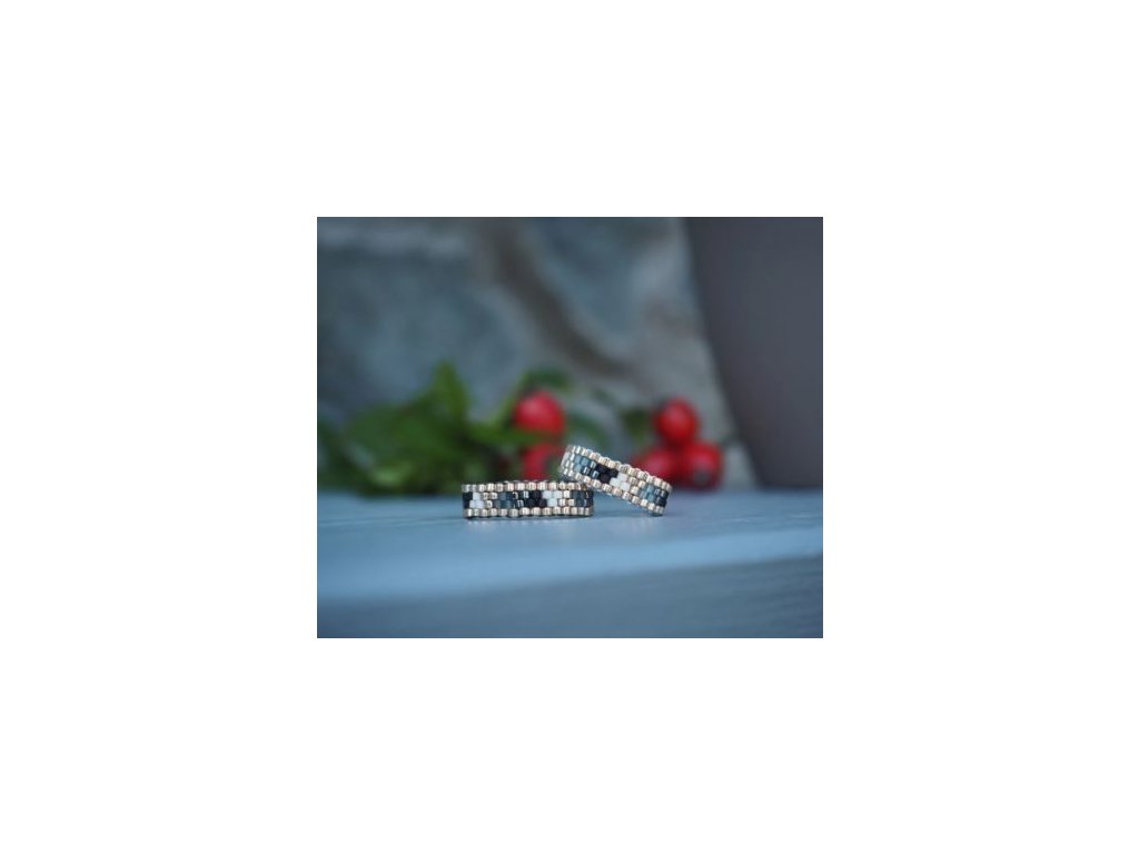 Prstýnek z kvalitních japonských Miyuki korálků ručně šitý časově náročnou technikou stehem Peyote. Je netradiční a je též nepřehlédnutelnou ozdobou ženské ruky. Šitý vysokopevnostní nití. Každému prstýnku se vždy pečlivě věnuji a po sešití jej znovu celý prošívám. To zajišťuje jeho pevnější tvar a delší výdrž.