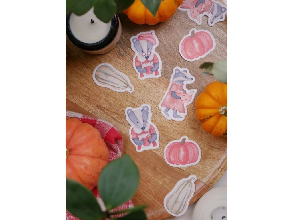 - Samolepky obsahují 5 autorských motivů jezevců a dýní.