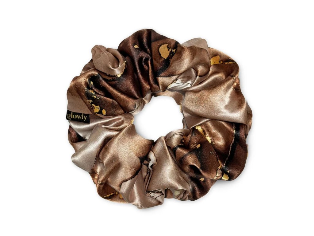 Saténová scrunchie - Coffee marble
