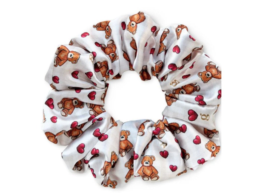 Saténová scrunchie - Teddy Bear