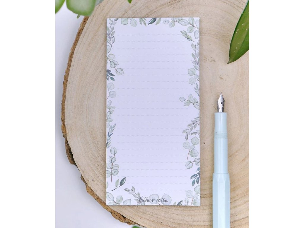 - Trhací lepený to do bloček s linkami a akvarelovým motivem eukalyptu