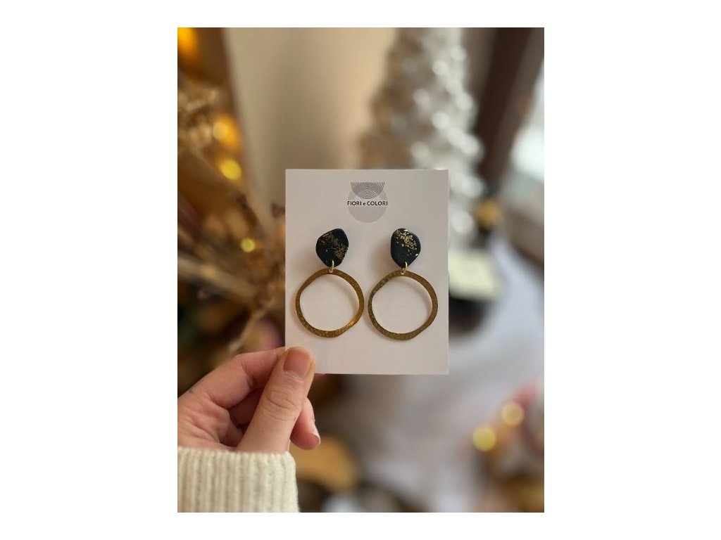 Velké náušnice - Černé se zlatými kruhy