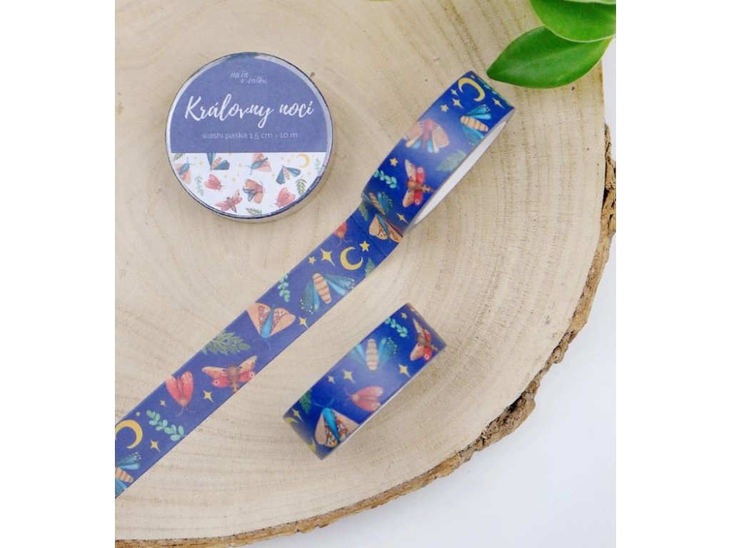 Washi páska Královny noci je ozdobená autorskou akvarelovou ilustrací, kterou jsme zasadili do královsky modrého pozadí. Využijete ji na zdobení diáře, k ozdobení fotoalba nebo třeba na přichycení fotek na stěnu. A co víc - bude se vám hodit k celé kolekci Královny noci! :)