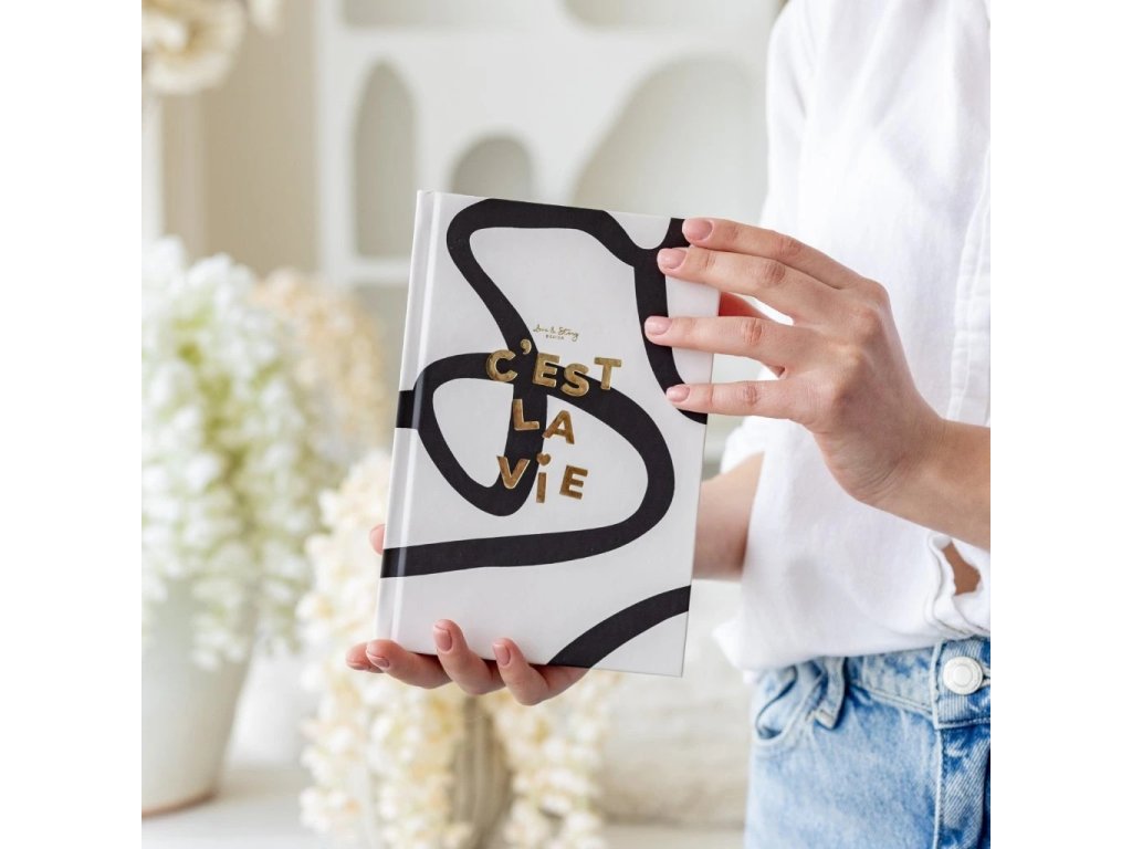 Zápisník s tvrdými knižními deskami v šité vazbě o velikosti 125 x 185 mm. Zápisník obsahuje 190 stran. Má knižní záložku. Linkovaný.